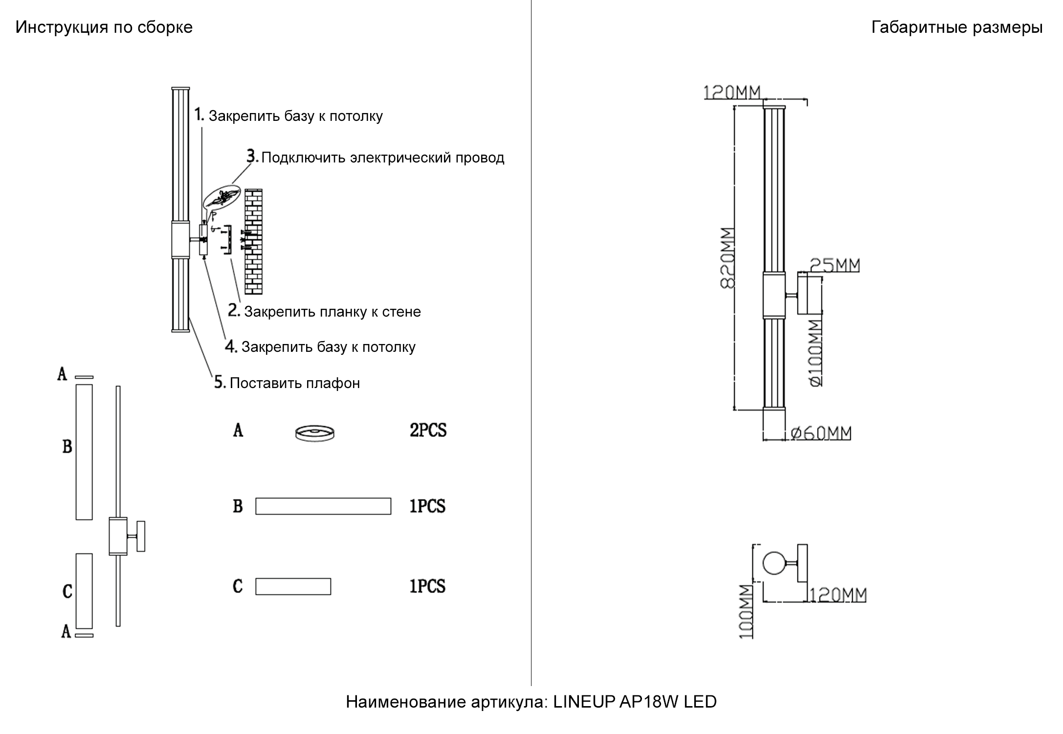 - Направление плафонов: Плафон вверх-вниз