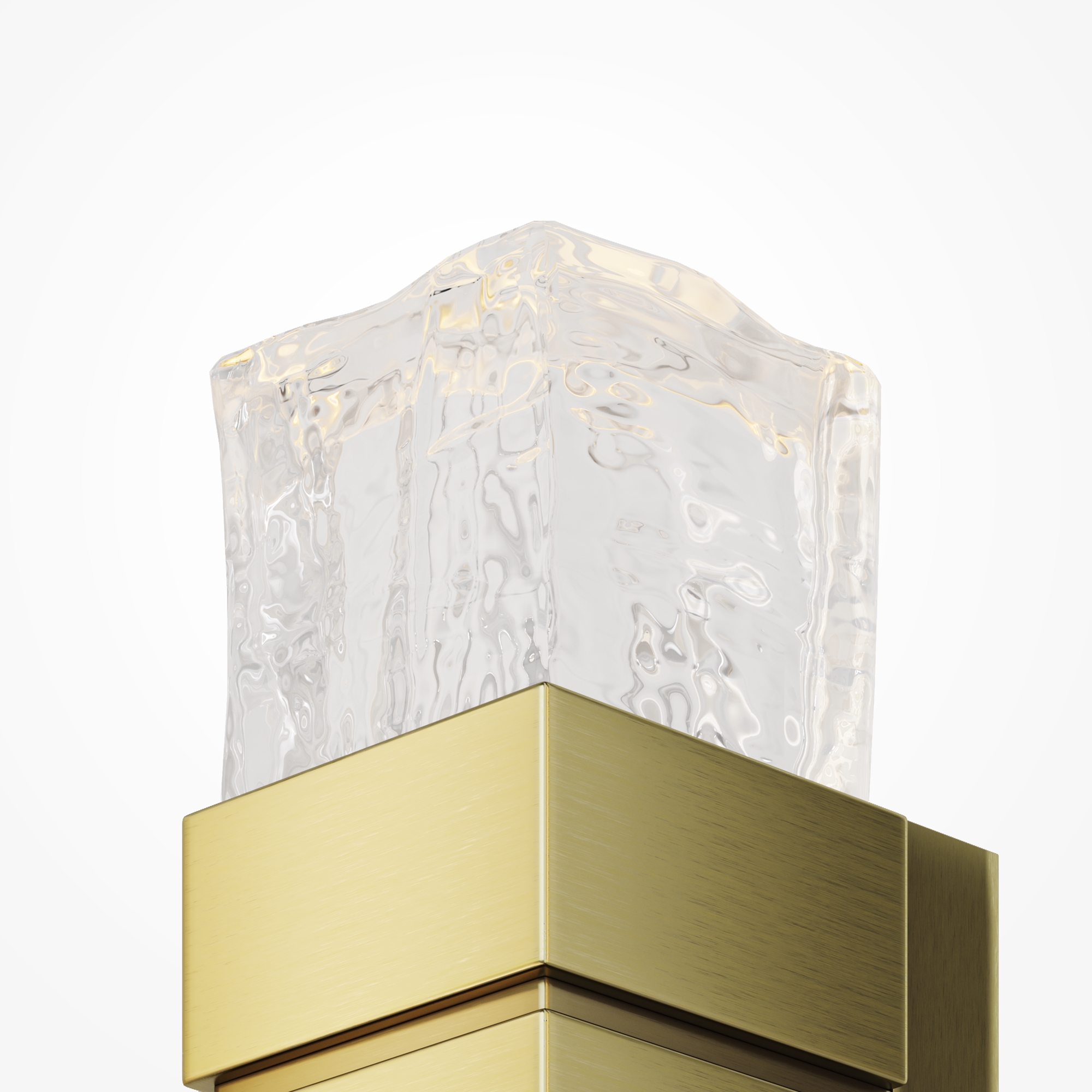 Дизайн серии воплощает хрупкую красоту и загадочное сияние арктических пейзажей. Трендовая массивная арматура выполнена из металла в цвете сатинированной латуни. Геометрический силуэт. Плафоны изготовлены из "мятого" стекла ручной работы, что обеспечивает уникальный световой рисунок на поверхностях. Встроенный LED-источник света с цветовой температурой 3000K создает теплое и уютное освещение. Светильник предназначен для интерьеров премиум-класса: спален, гостиных и офисов.