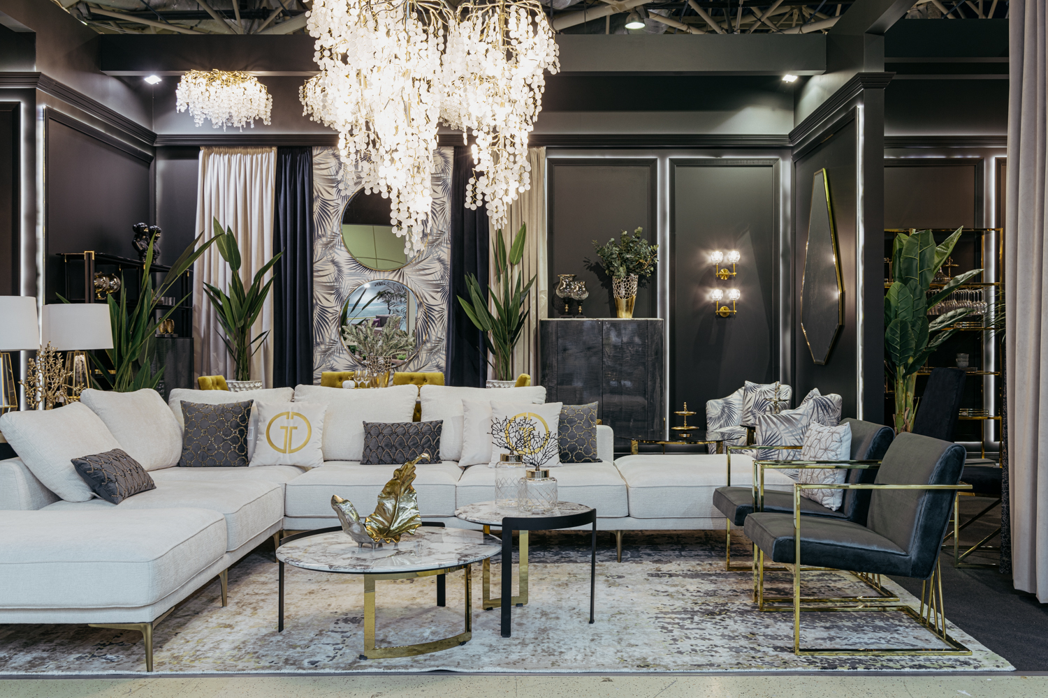 Комплект мебели №51 модульный Диван Тесоро(Tesoro) (левый угол). В состав комплекта входит: модуль прямой DO+P-1шт, модуль угловой правый DR+P- 1шт. Комплект выполнен в ткани из коллекции Garda Decor- шенилл Mobi-Ecru. В состав комплекта входят декоративные подушки: 45*45см в ткани Атмосфера(Atmosphera)010-2шт, 45*45см в ткани Атмосфера(Atmosphera)000-2шт с вышивкой эмблема в цвет золото. Металлические опоры 18см, цвет бронза. Габариты комплекта: ширина- 2900мм, глубина-3800мм, высота- 900мм. Глубина сиденья- 750мм, высота посадочного места- 440мм.