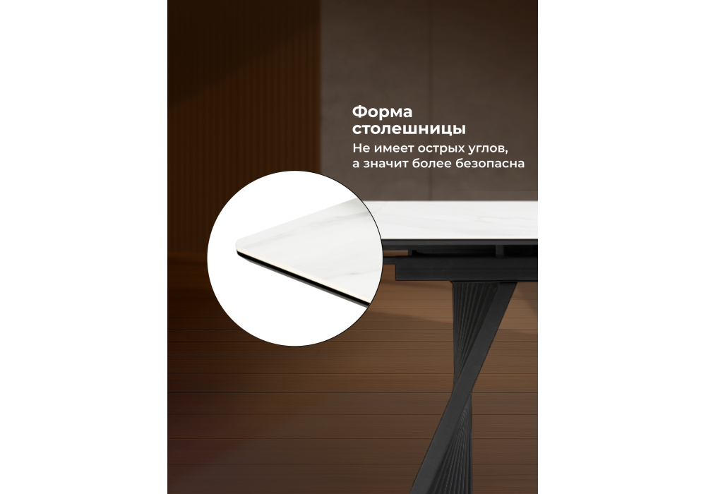 Керамический стол раздвижной Woodville Вейв 160(220)х89х75 белый мрамор snow white / черный 612186 в Курске