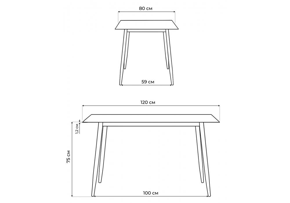 Материал каркаса - металл; Материал столешницы - Керамика; Цвет ножек - черный; Ширина - 80; Высота - 75; Длина - 120;