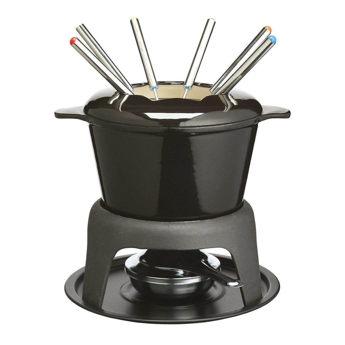 Купить "Набор для приготовления фондю (кастрюля, горелка, вилки 6шт.) чугунный покрыт BLACK эмалью KC Kitchen Craft"
