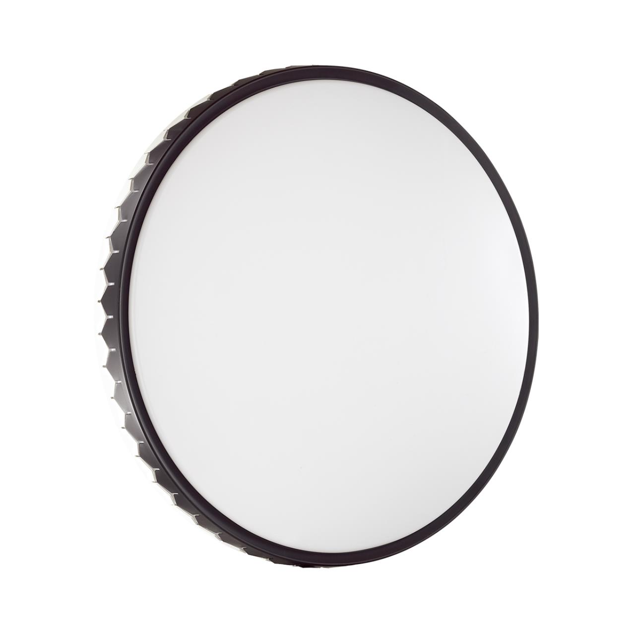 Светильник 3053/EL линии DORTA состоит из металлического основания (базы) и пластикового рассеивателя. Материал рассеивателя - качественный пластик белого цвета с матовой поверхностью, обеспечивающий светильнику равномерное рассеивание и хорошее светопропускание. Форма плафона: круглая, декорирована ободом в виде орнамента из металла черно-белого цвета. Степень защиты IP43 позволяет использовать светильник в определенных зонах влажных помещений. В комплект входит заменяемый LED модуль с линзами, мощностью 72Вт, которая соответствует лампе накаливания 730Вт. А также пульт ДУ, с помощью которого осуществляется плавное изменение цветовой температуры 3000-6300К, изменение яркости, переход в режим переключения теплого/белого/холодного/ночного света. Светильник имеет функцию "память".