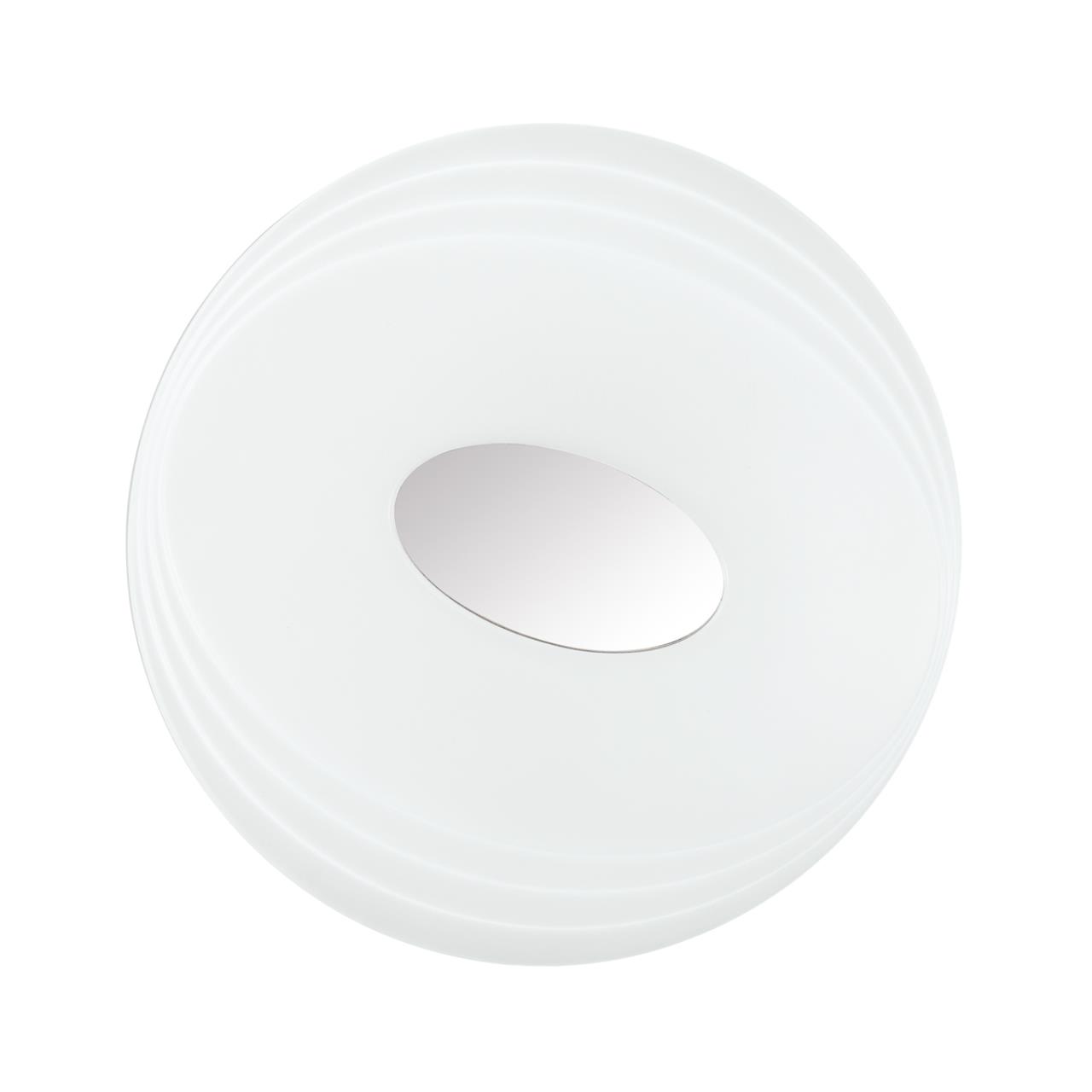 Светильник 3027/EL линии SEKA состоит из металлического основания (базы) и пластикового рассеивателя. Материал рассеивателя - высококачественный акрил белого цвета с матовой поверхностью, обеспечивающий светильнику равномерное рассеивание и хорошее светопропускание. Форма плафона: круглая, с рельефной структурой, декорирована центральной накладкой из металла цвета хром. Степень защиты IP43 позволяет использовать светильник в определенных зонах влажных помещений. В комплект входит заменяемый LED модуль, мощностью 72Вт, пульт ДУ с функциями: плавного изменения цветовой температуры 3000-6500К, изменения яркости, перехода в режим переключения теплого/белого/холодного/ночного света, регулировки подсветки RGB. Светильником можно также управлять через мобильное приложение LampSmart (скачать в Google Play, Appstore).У моделей с RGB "функции память" нет.