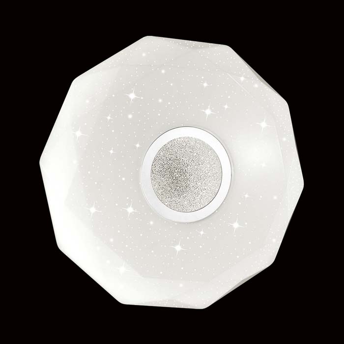 Настенно-потолочный светодиодный светильник с пультом ДУ Sonex Prisa 2057/ML, входящий в коллекцию Prisa, отлично подойдет для освещения пространства в спальне, гостиной, кухне, в ванной, на балконе, в офисе, в ресторане, оформленных в современном стиле или в стиле Хай-тек. Данный артикул имеет один круглый акриловый плафон белого цвета с глянцевой поверхностью, направленный вниз или в стороны, а также белую арматуру, изготовленную из металла. Осветительный прибор декорирован рельефным орнаментом по краям, центральной вставкой с эффектом переливания и кантом цвета хром и рисунком в виде прозрачных серебристых точек, которые придают включенному светильнику магический эффект "звездного неба". Глубина расположения артикула от стены равна 7,2 см. Производитель SONEX дает гарантию на свое изделие 1 год и обращает внимание на то, что осветительный элемент с цоколем LED встроен в конструкцию и не требует приобретения дополнительных лампочек, а общая мощность светильника составляет 160 Вт, что эквивалентно лампе накаливания 1150 Вт и позволяет осветить помещение площадью 36-45 кв.м. Цветовая температура регулируется в диапазоне 3000 - 6500 К, что делает атмосферу в вашем интерьере уютной и яркой. Степень защиты IP43 позволяет использовать данный артикул в определенных зонах влажных помещений. Способ крепления светодиодного светильника к стене или потолку на планку позволяет быстро и просто осуществить монтаж изделия. В комплекте так же идет пульт ДУ, с помощью которого осуществляется плавное изменение цветовой температуры, изменение яркости, переход в режим переключения света. Лаконичный дизайн и технические особенности настенно-потолочного светодиодного светильника с пультом ДУ Sonex Prisa 2057/ML, делают его особенным элементом декора, который украсит любое интерьерное пространство.
