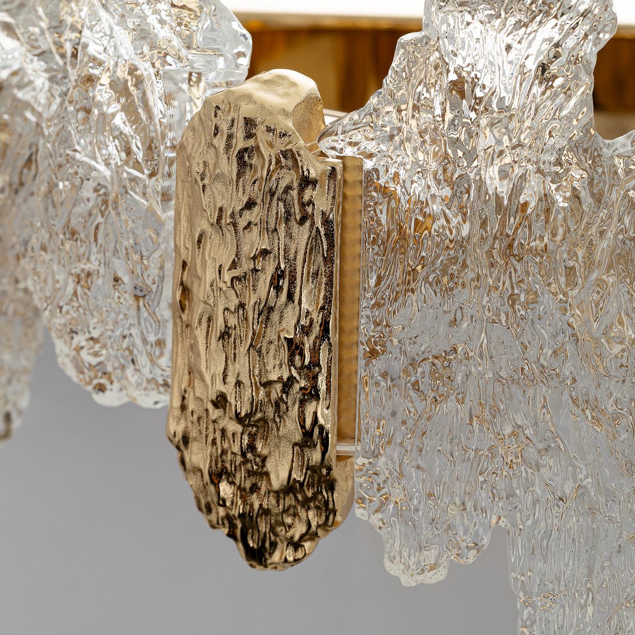 Каркас светильника — металлический, роскошного золотистого оттенка. Рассеиватель из оптического полимера имеет оригинальную форму, напоминающую потоки застывшей лавы. Светильник крепится к стене на планку