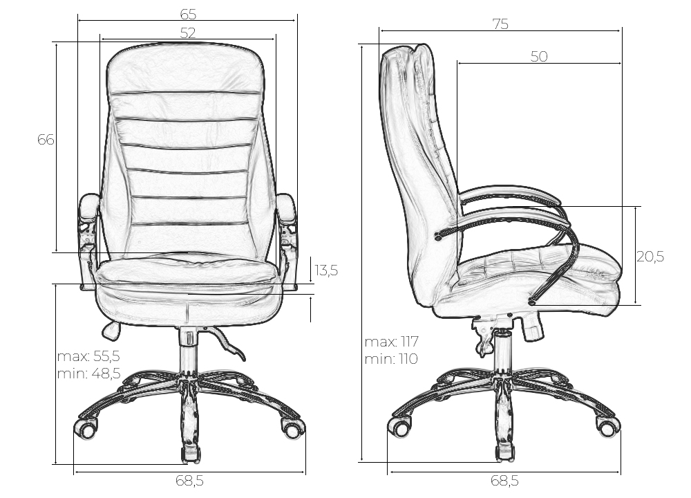 - Высота сиденья max: 555