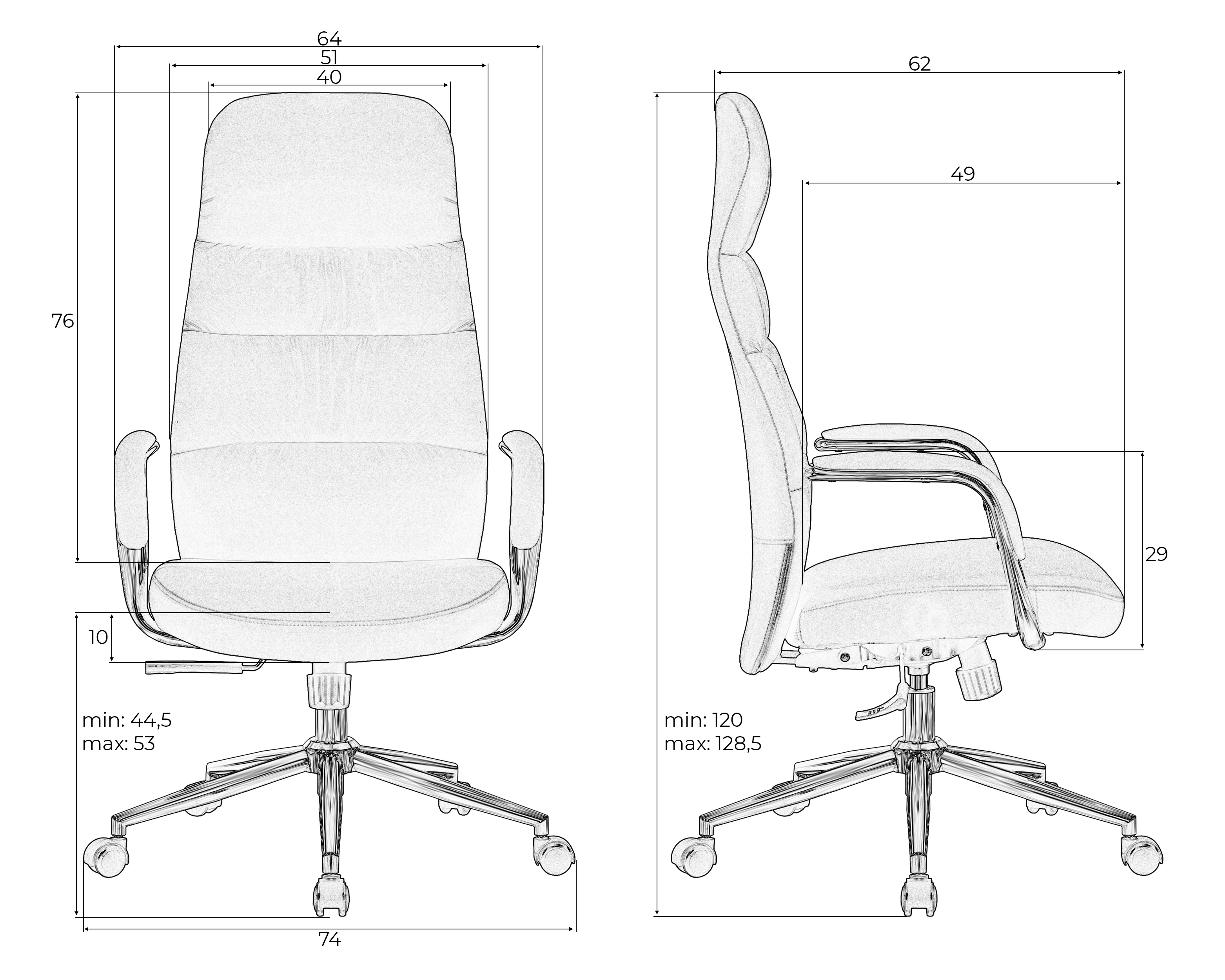 - Высота сиденья: 44.5 мм