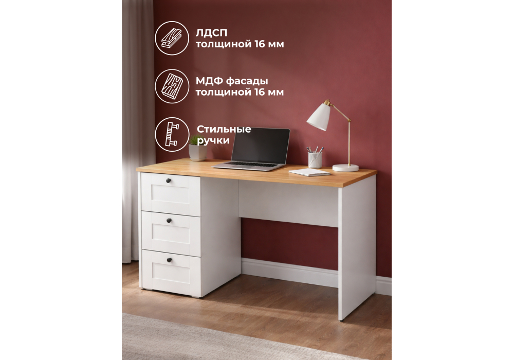 Письменный стол Woodville Опра белый шагрень / дуб золотой craft 676810 в Курске