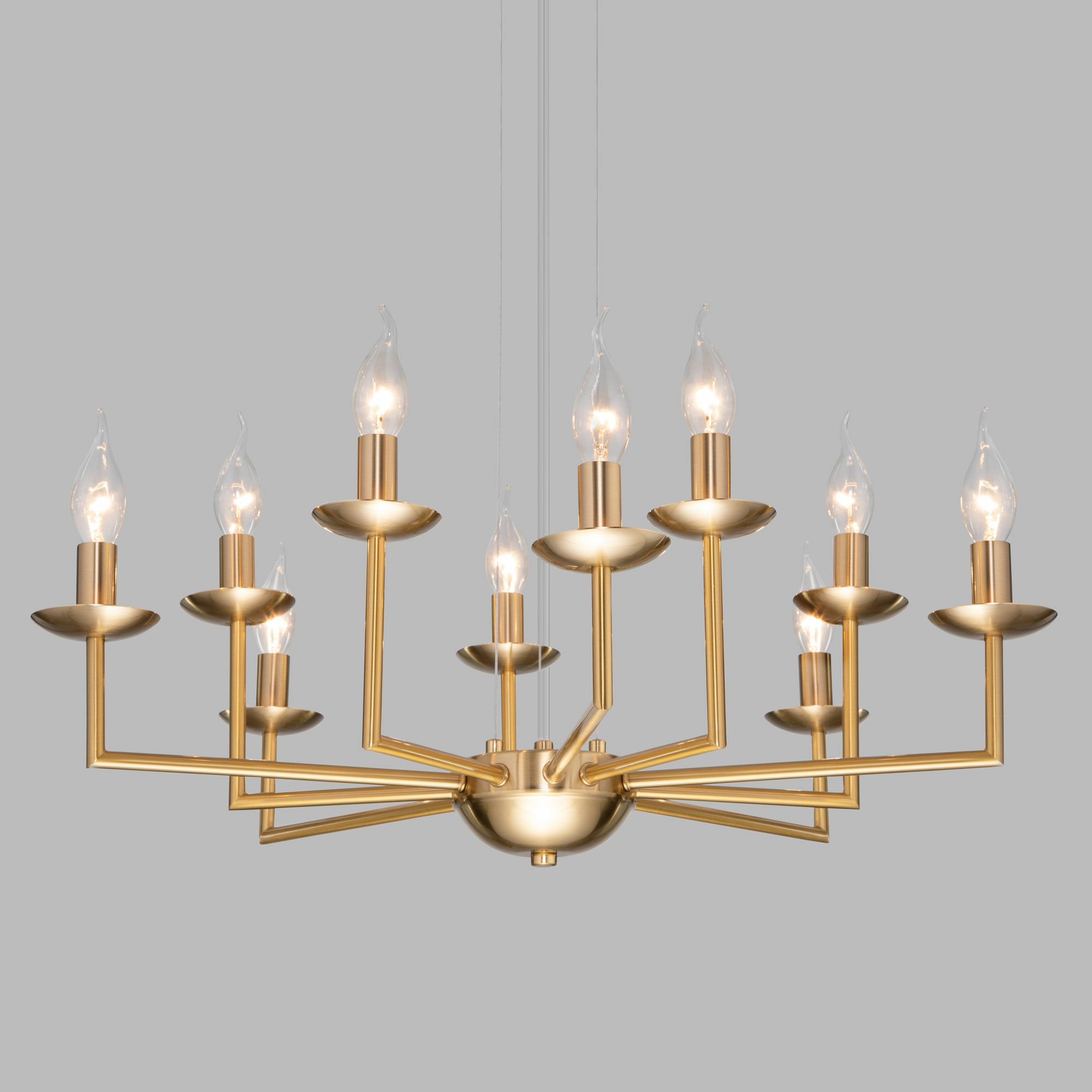 Классическая люстра на 10 рожков в цвете латунь преобразит потолочное пространство и создаст в вашем помещении комфортное полноценное освещение на площади 18 м кв.