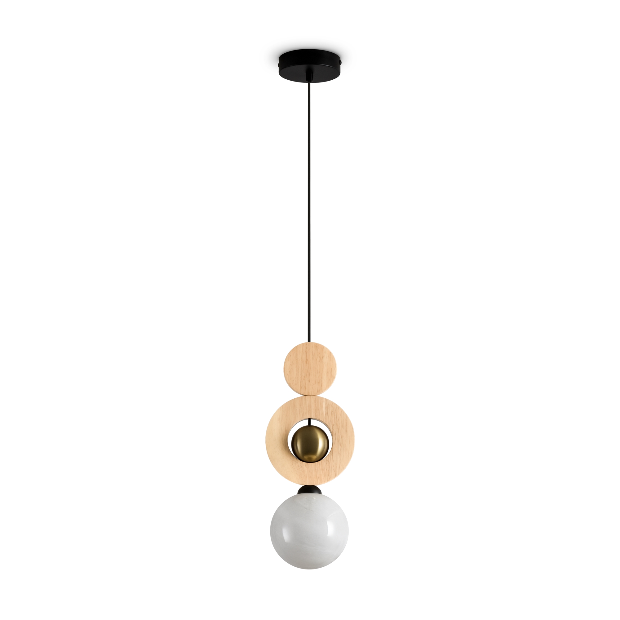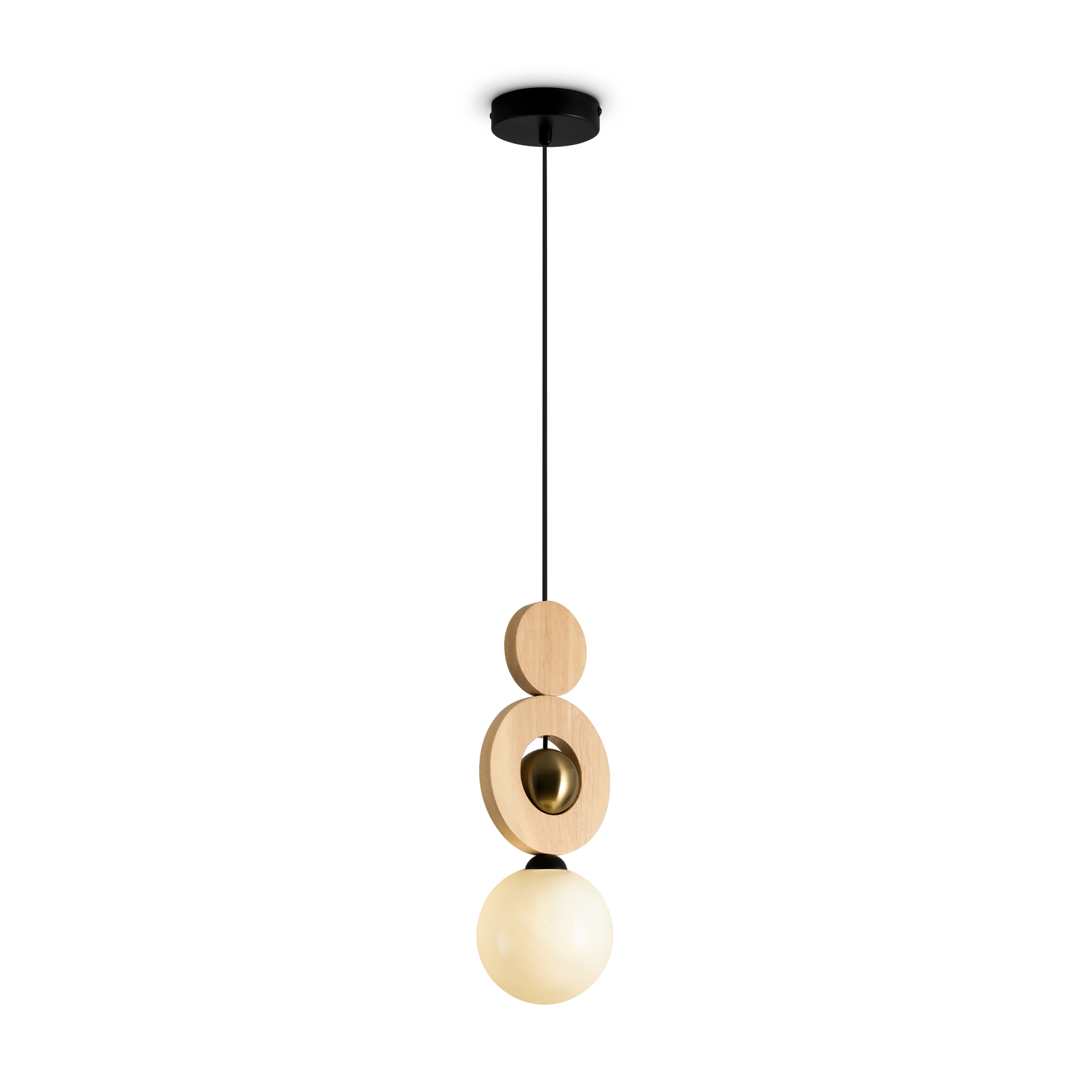 Металлическая арматура в цвете латунь. Деревянные и стеклянные сферические плафоны с мягким рассеянным светом. Лампа G9 (в комплект не входит.). Элегантный дизайн для уютных интерьеров.