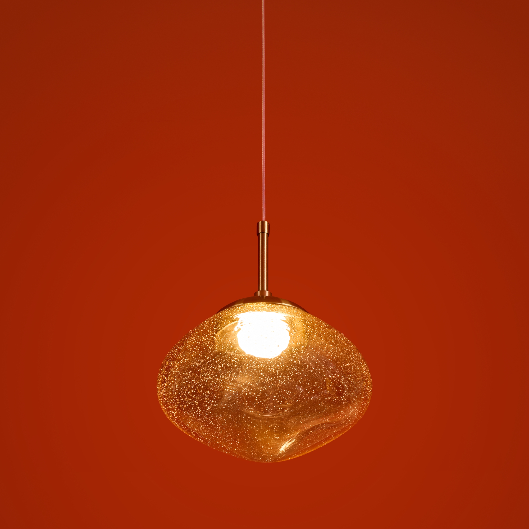 Арматура — металл. Стеклянные плафоны с пузырьками в трёх цветах: дымчатый, прозрачный, янтарный. Интегрированный LED источник света 3000К, Ra 80, угол 180°. Высота регулируется.