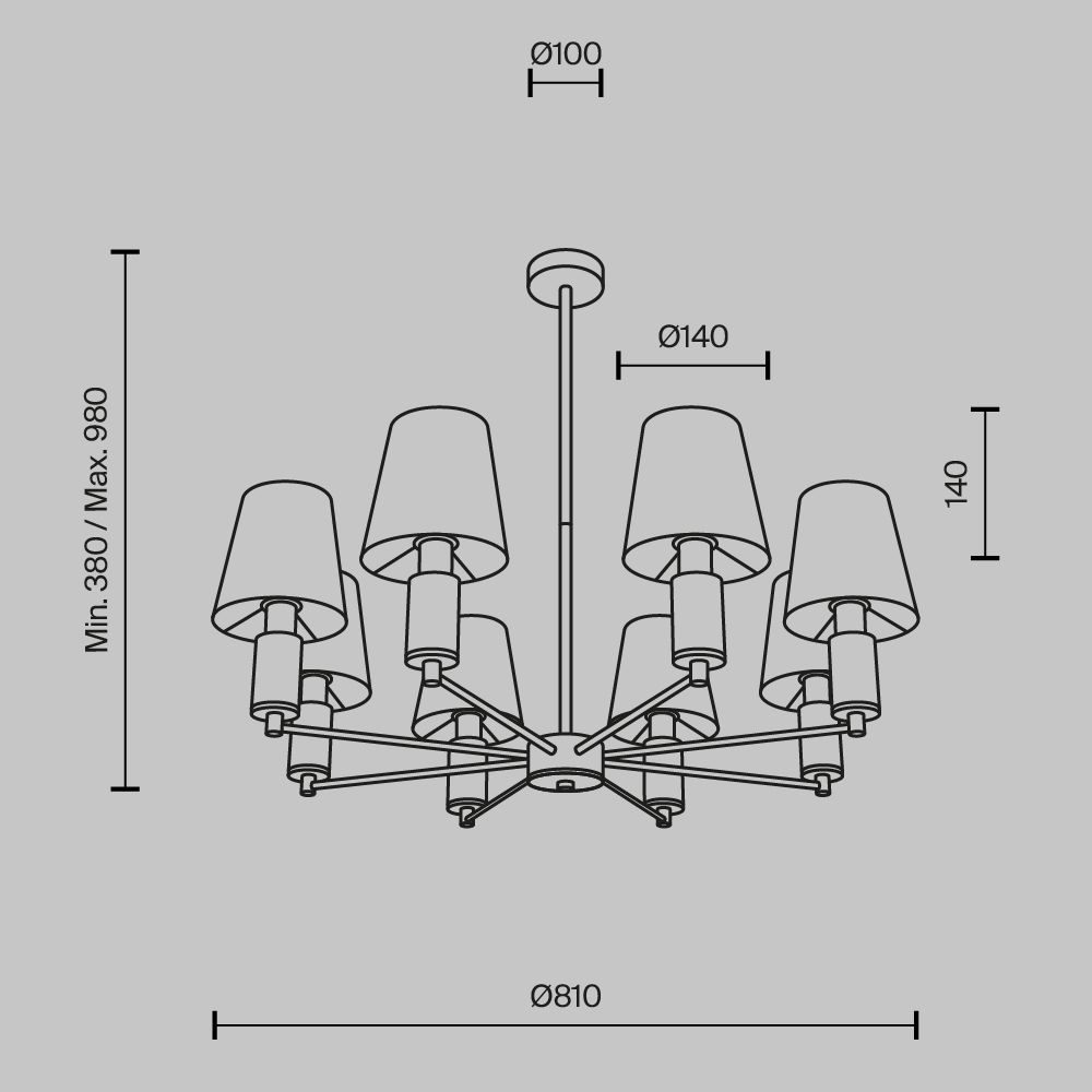 - Высота плафона (абажура): 140