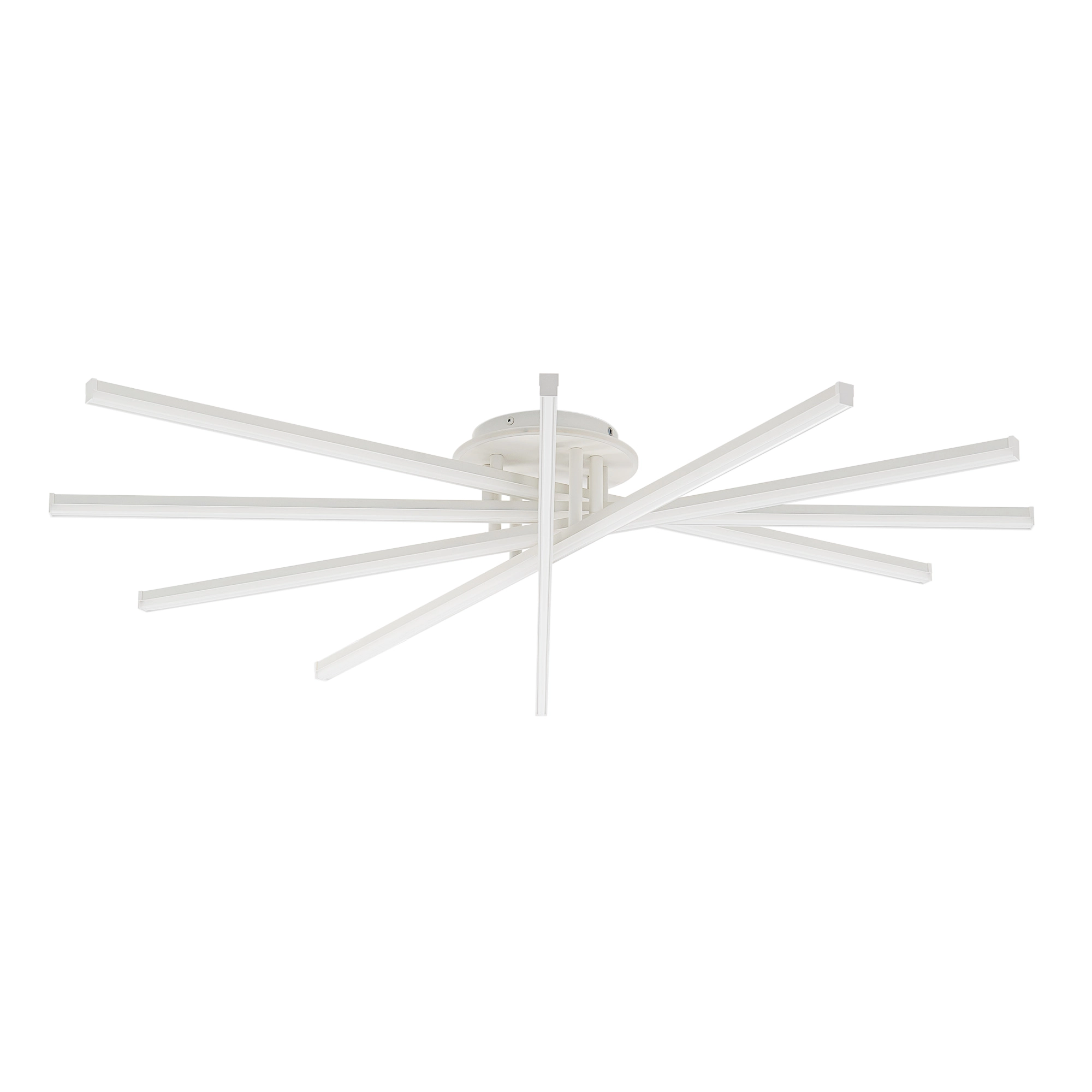 При помощи инфракрасного пульта можно плавно регулировать яркость освещения и цветовую температуру света, настраивая модель так, как вам комфортно. Есть также режим ночника, а также память последнего режима. Можно сохранить любимые режимы освещения (до 4-х штук) и переключать их при помощи простого выключателя на стене. Мощность люстры — 150 Вт, ее можно установить на любой потолок (включая натяжные).