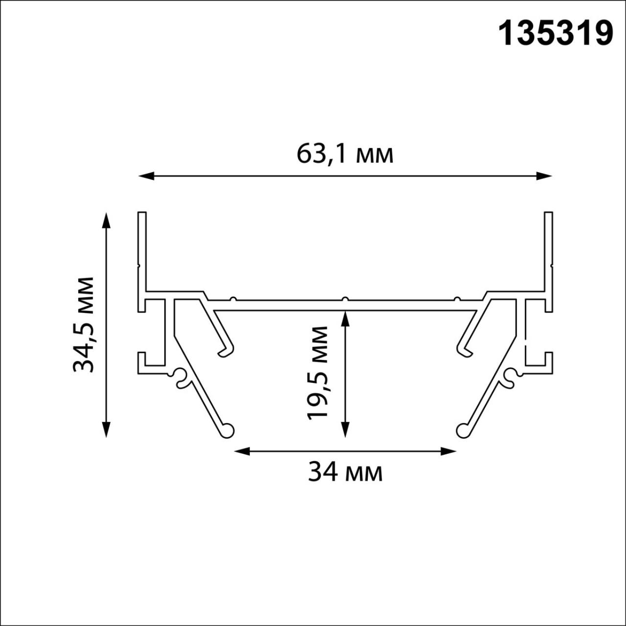 Профиль встраивания однофазного трёхжильного трека в натяжной потолок Novotech EXPERT 135319 в Курске