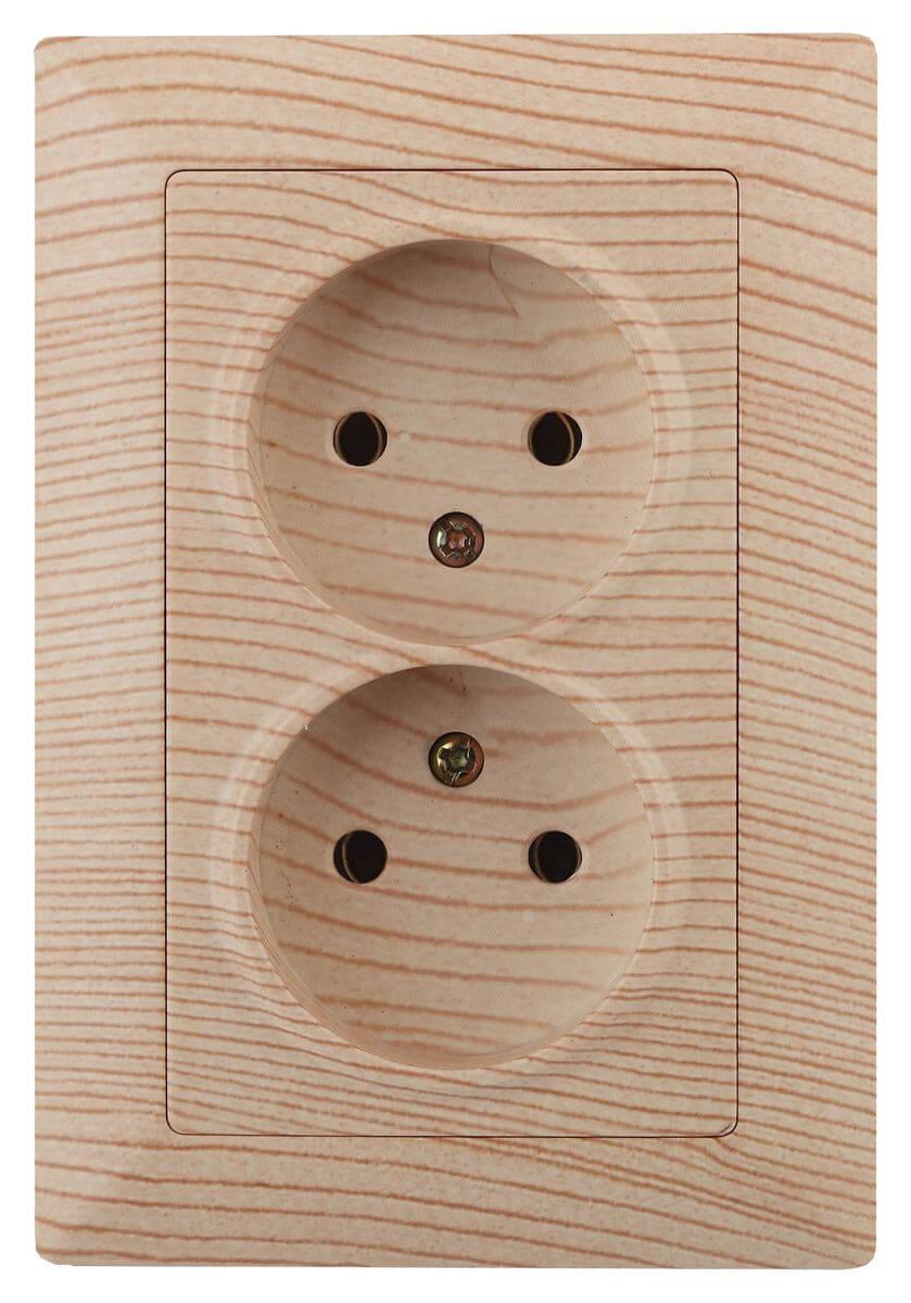 Купить "Розетка двойная ЭРА Intro Solo 2х2P 16A 250V дерево 4-204-11 Б0043332"