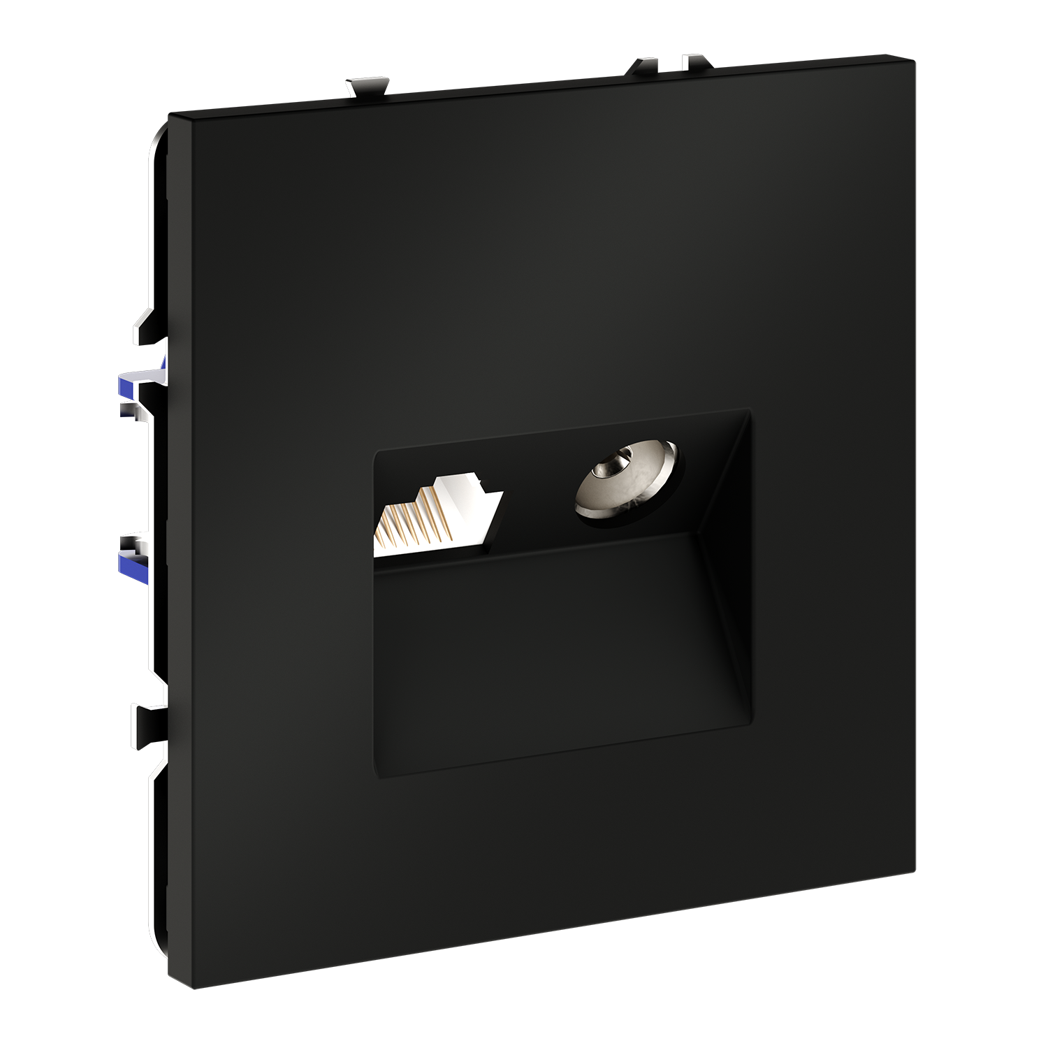 Купить "Розетка телевизионная встраиваемая TV+RJ45 кат. 6 Voltum S70 VLS060708 (черный матовый)"