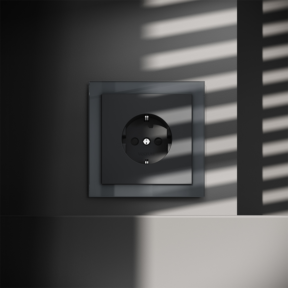 Купить "Розетка встраиваемая с заземлением и защитными шторками, 16А Voltum S70 VLS040207 (графит)"