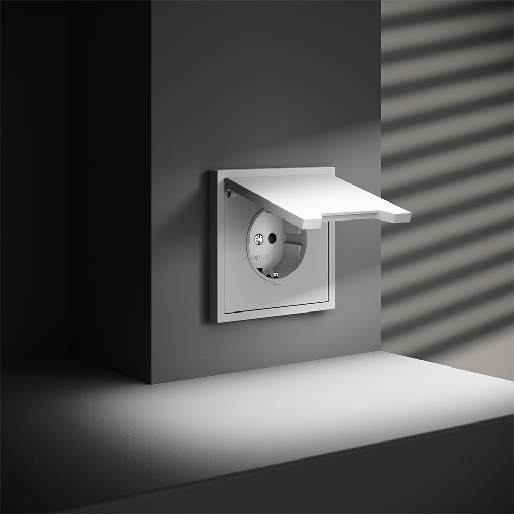 Купить "Розетка встраиваемая с заземлением, защитными шторками и крышкой 16А Voltum S70 VLS040302 (белый матовый)"