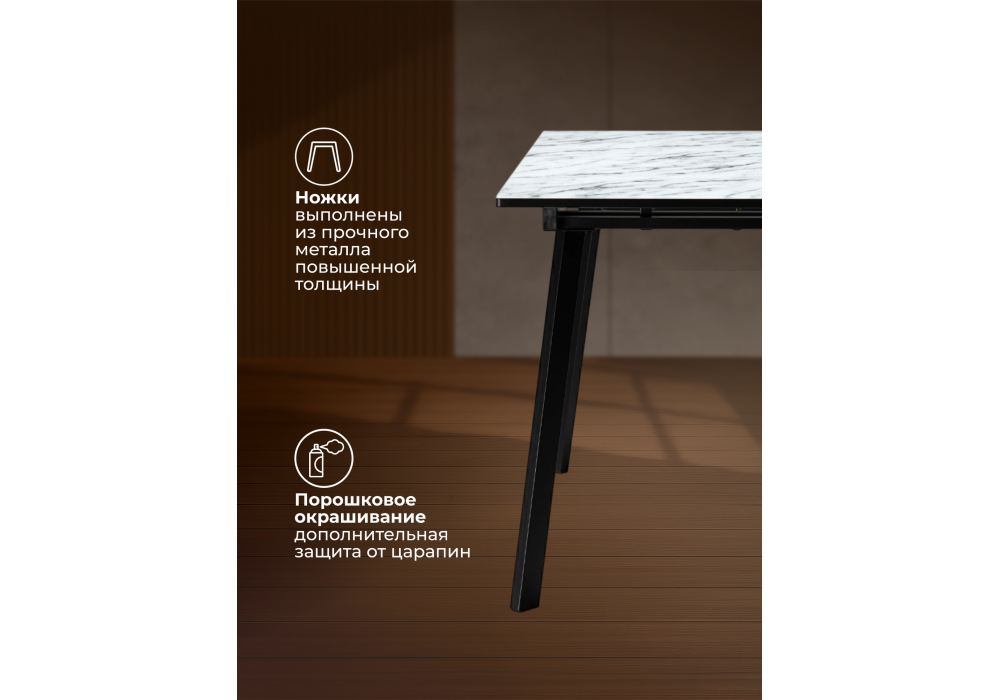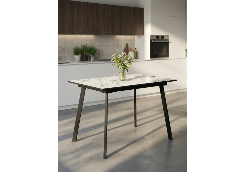 Стол стеклянный раскладной 110(140)х68х76 Woodville Агни мрамор белый / черный матовый 528558 в Курске