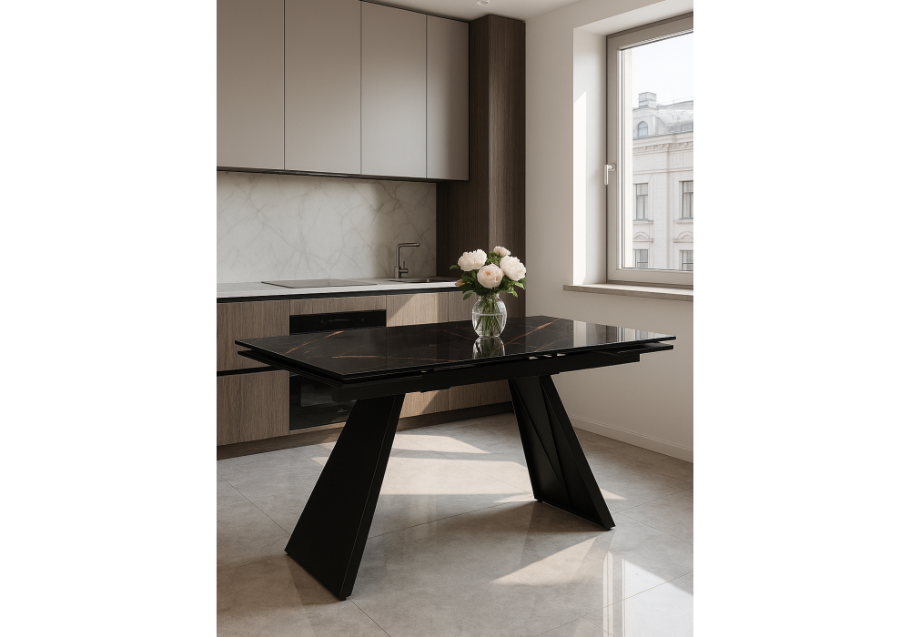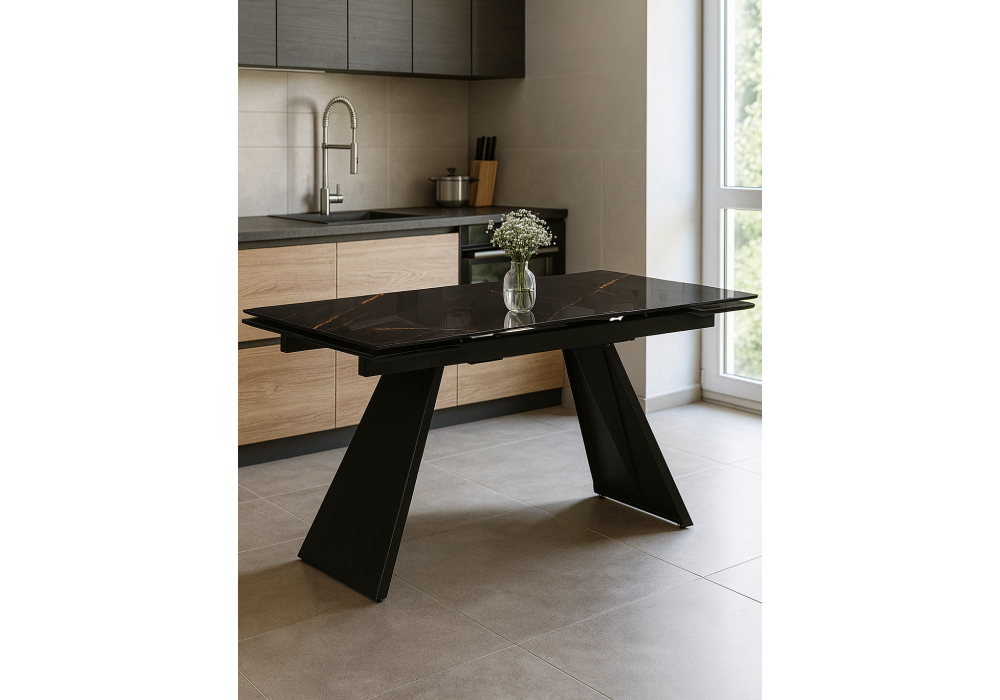 Стол стеклянный раздвижной Woodville Хорсборо 140(200)х80х79 обсидиан / черный 588007 в Курске