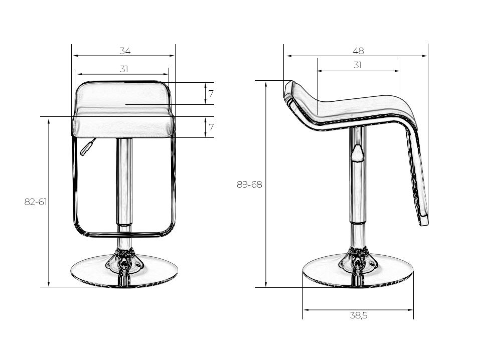 - Высота сиденья max: 820