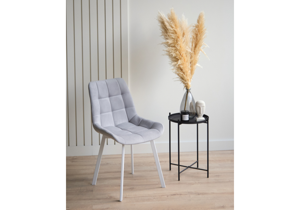 Материал каркаса - металл; Материал сиденья - велюр; Материал обивки - велюр; Цвет ножек - белый; Ширина - 50; Глубина - 60; Высота - 80; Ширина сиденья - 44; Глубина сиденья - 41; Высота сиденья - 48;