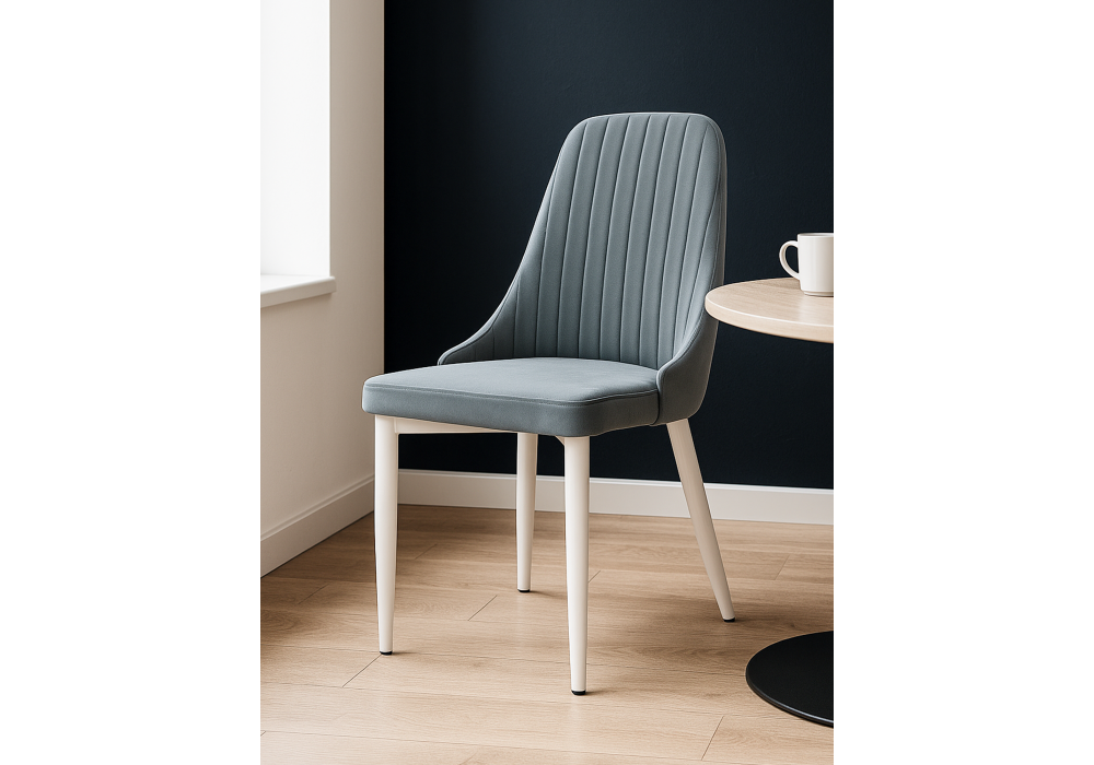 Материал каркаса - металл; Материал сиденья - велюр; Материал обивки - велюр; Цвет ножек - белый; Ширина - 47; Глубина - 57; Высота - 89; Ширина сиденья - 44; Глубина сиденья - 44; Высота сиденья - 47;