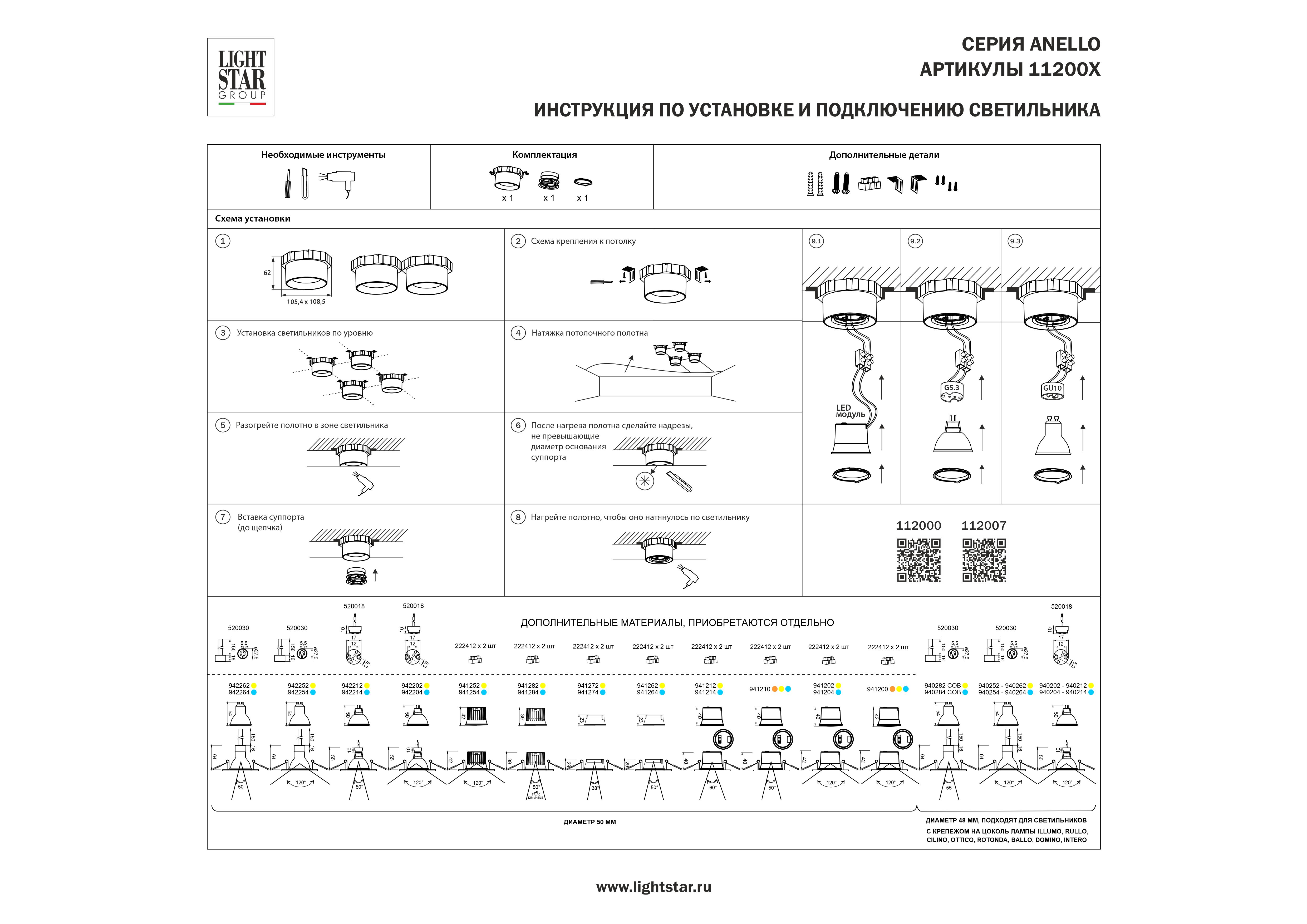 Светильник в натяжной потолок Anello Lightstar 112007 в Курске