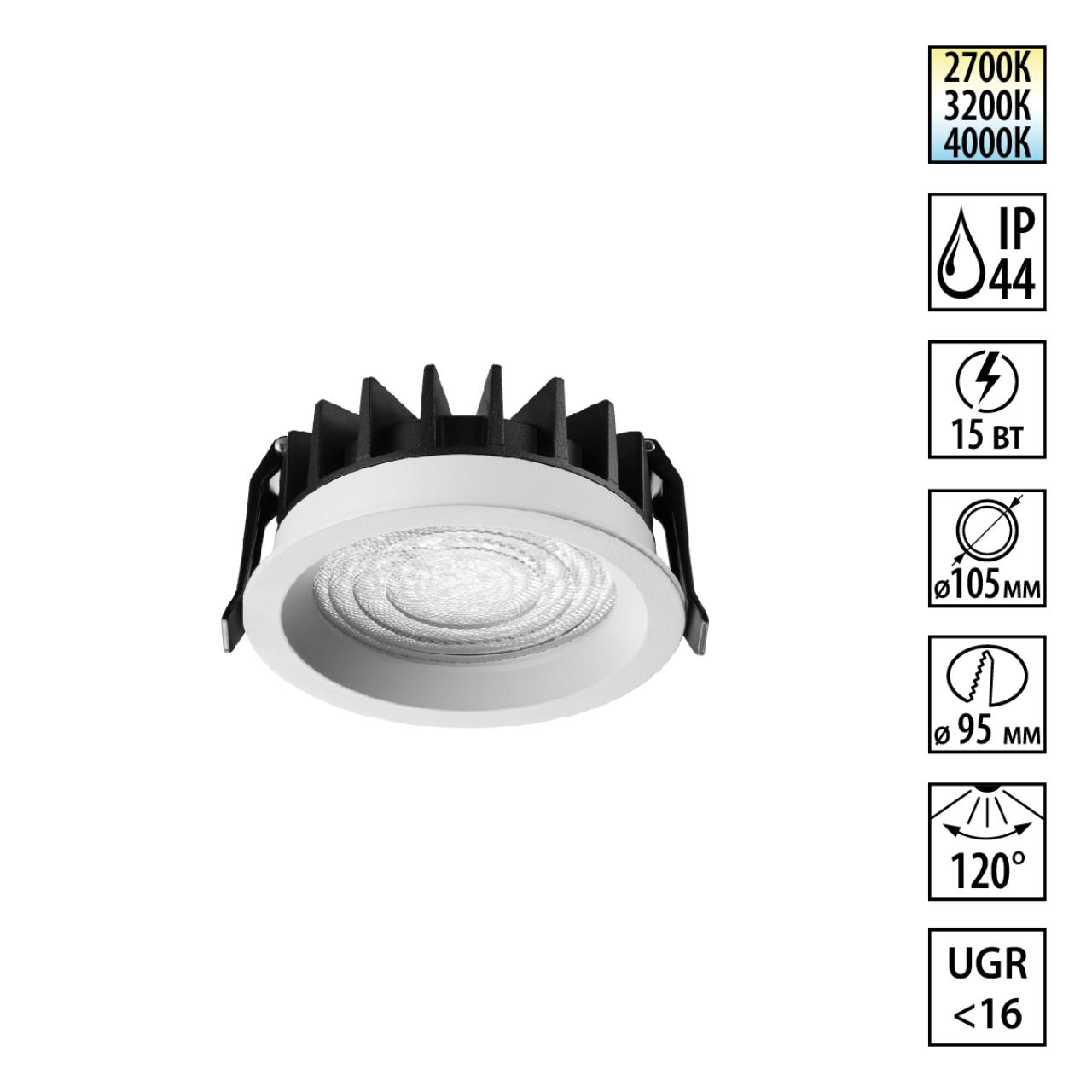 Купить "Светильник встраиваемый светодиодный с переключателем цветовой температуры Novotech FLUO 359844 белый"