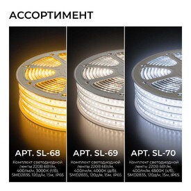 Комплект светодиодной влагозащищенной ленты OGM 6W/m 120LED/m 2835SMD теплый белый 15M SL-68