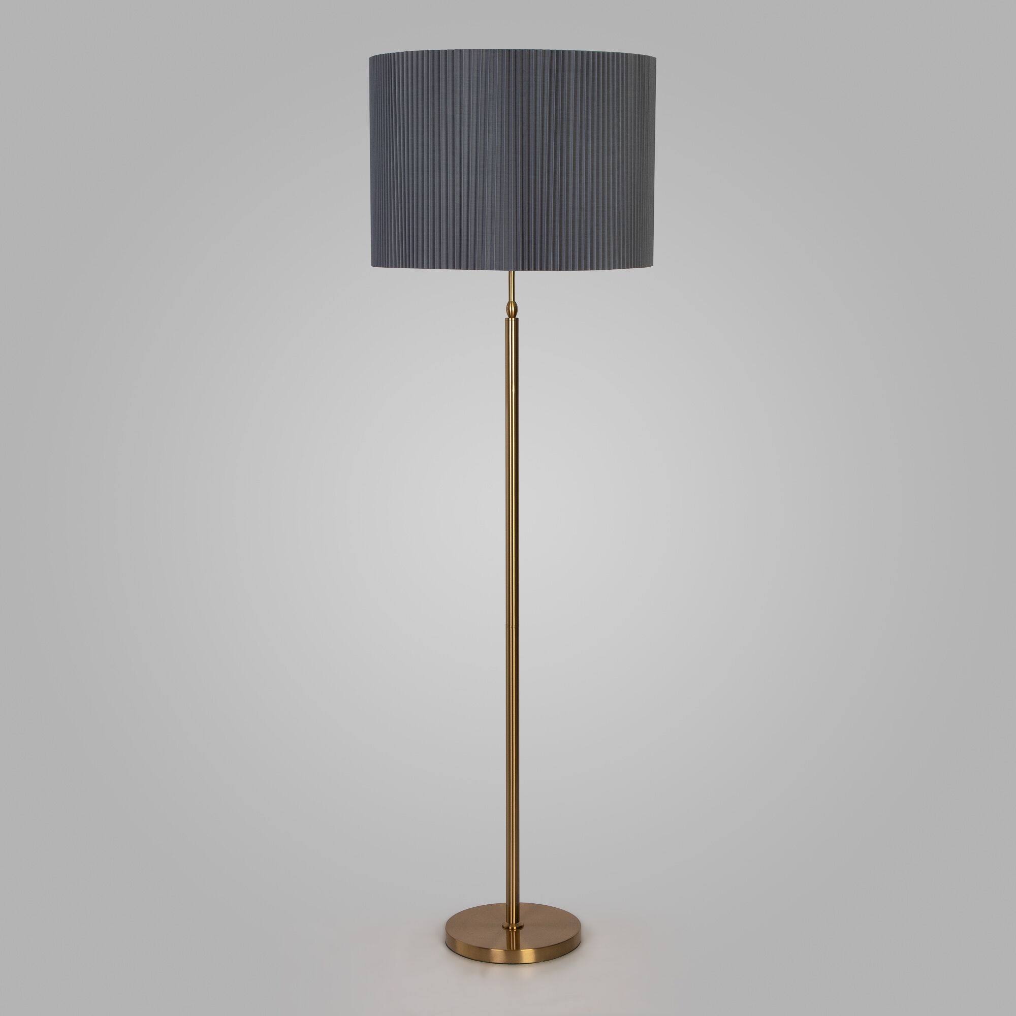 Благодаря серому тканевому абажуру напольный светильник создает мягкое равномерное свечение, подходящее для комфортного чтения книг в вечернее время. Прочный металлический корпус светильника устойчив к механическим воздействиям, а защитное покрытие обеспечивает надежную электроизоляцию и презентабельный внешний вид.