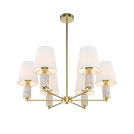 Серия включает подвесные (6 и 8 рожков), настенные, настольные и напольные светильники. Арматура: металл цвета сатинированной латуни с декоративными элементами из серого мрамора. Абажуры: текстиль. Сменный источник света с цоколем E14. Высота подвесных светильников регулируются сегментами штанги. Классический дизайн в современном исполнении. Предназначены для основного и акцентного освещения жилых помещений. Универсальное применение: гостиные, столовые, спальни, кабинеты, прихожие.