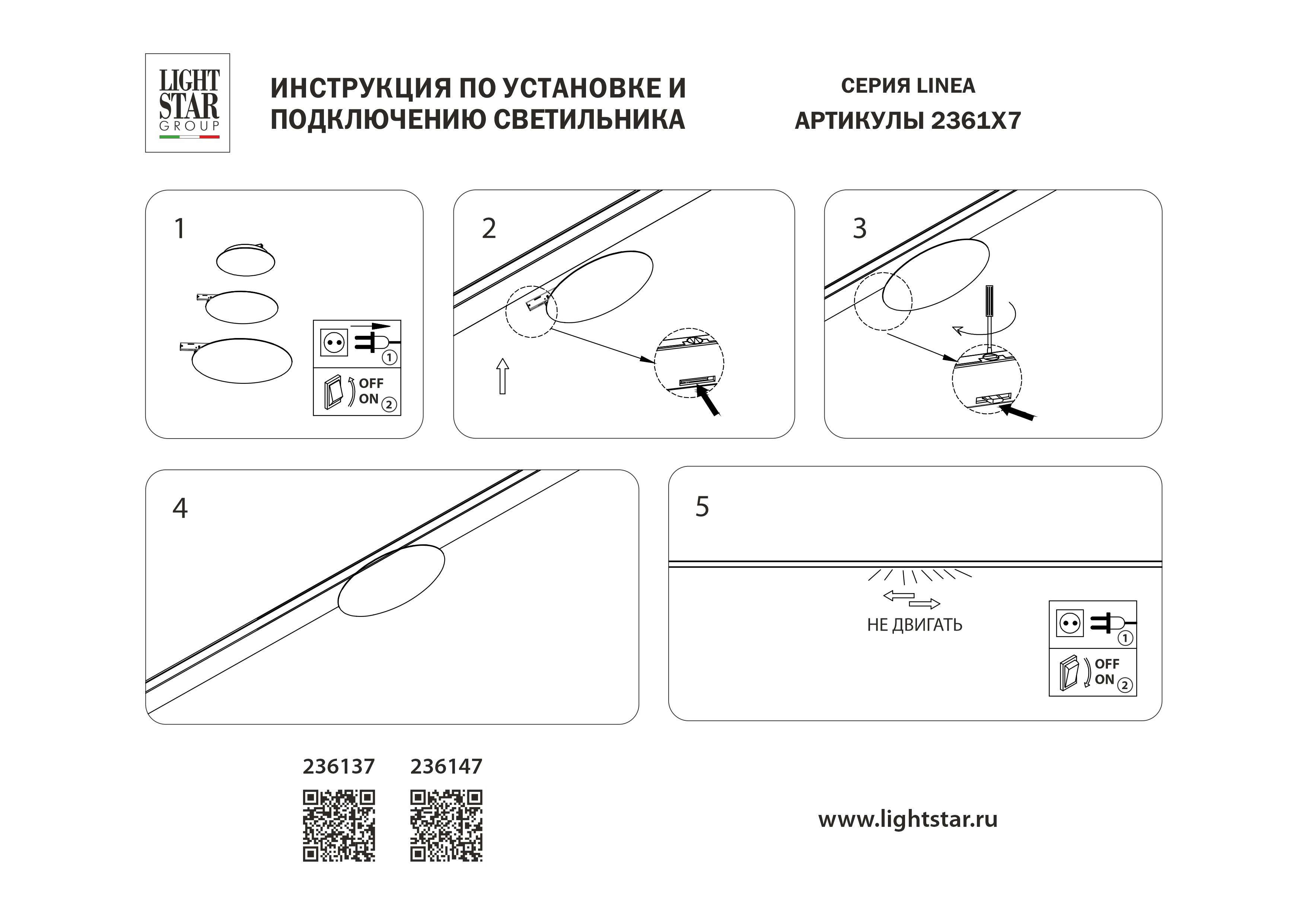 Трековый однофазный светильник 24V 5W 200° 3000K Lightstar Linea 236137 в Курске