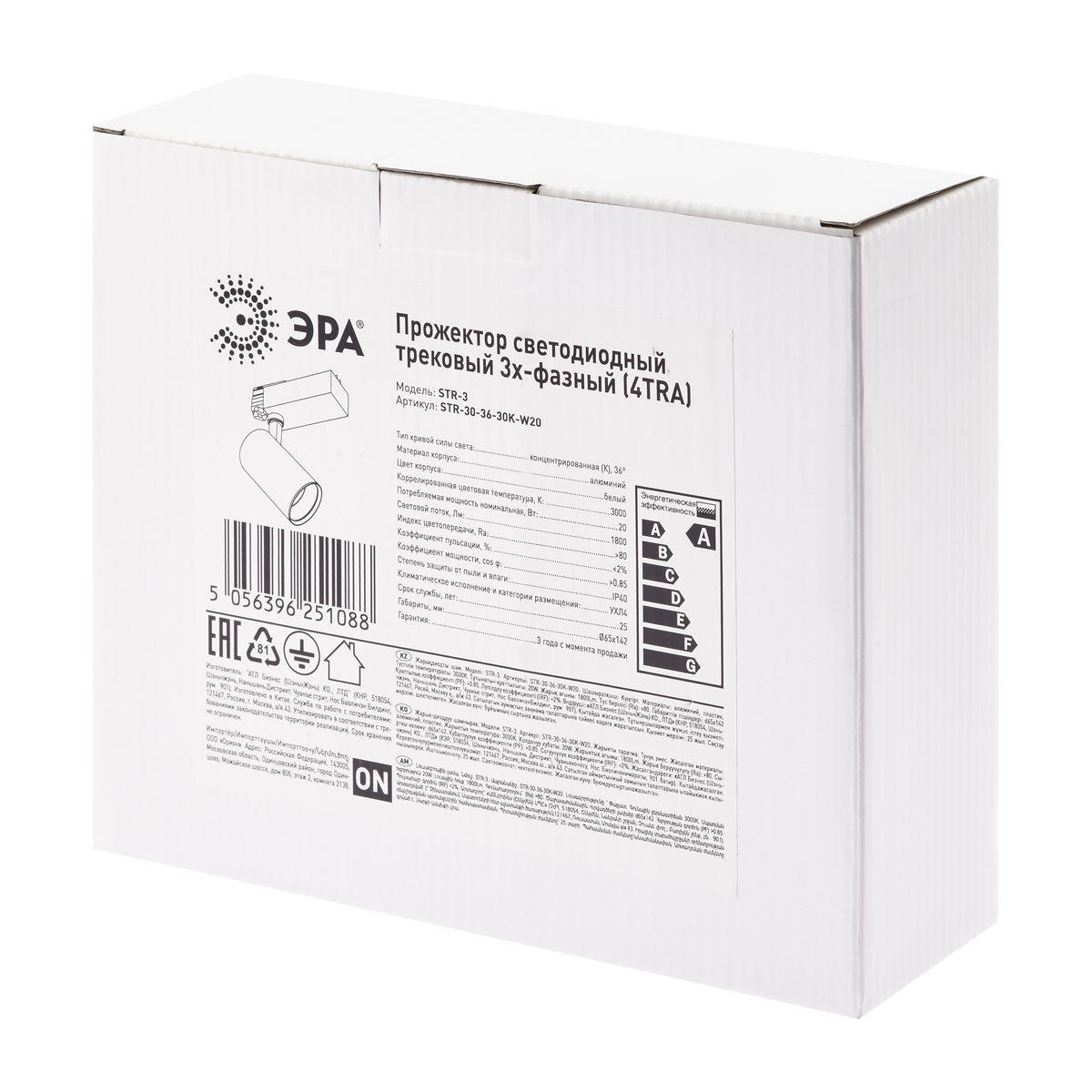Купить "Трековый светодиодный светильник ЭРА SТR-30-36-30K-W20 Б0049772"