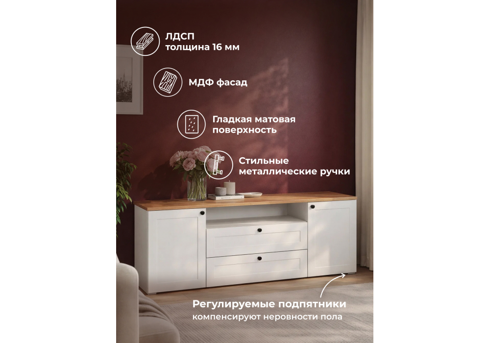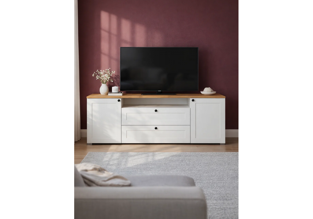Купить "ТВ-тумба Woodville Опра белый шагрень / дуб золотой craft 676802"