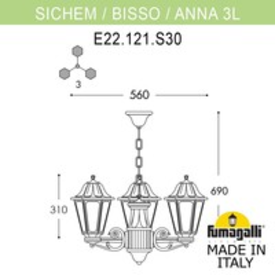 Подвесной уличный светильник Fumagalli Sichem/Anna 3l E22.120.S30.BYF1R