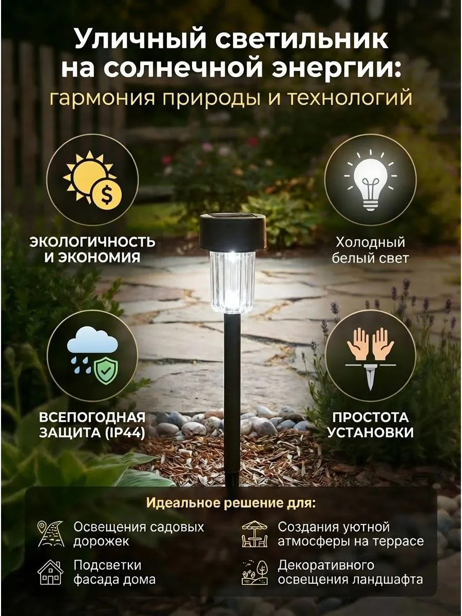 - Технические особенности: На солнечных батарейках, Пылевлагозащищенные